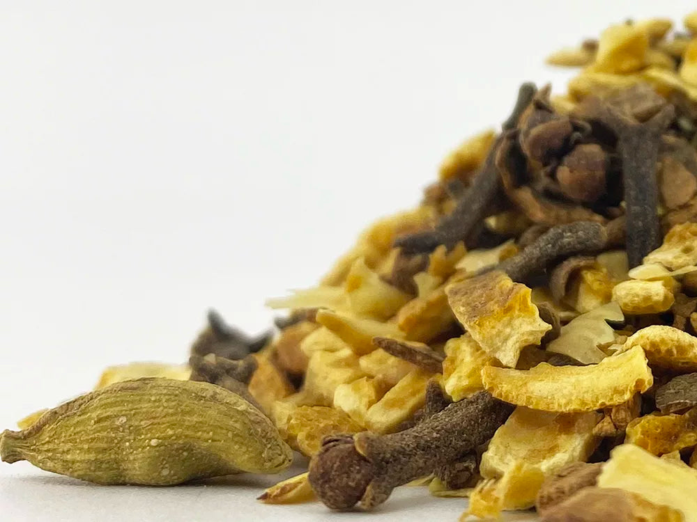 Opis Mieszanka przypraw i pomarańczy bez dodatkowych aromatów o intensywnym, korzennym smaku. Cynamon, skórka pomarańczy, goździki, nasiona kardamonu. Mieszanka przypraw bez dodatkowych aromatów o intensywnym, korzennym smaku. Deklaracja wartości odżywczych na 100 ml: