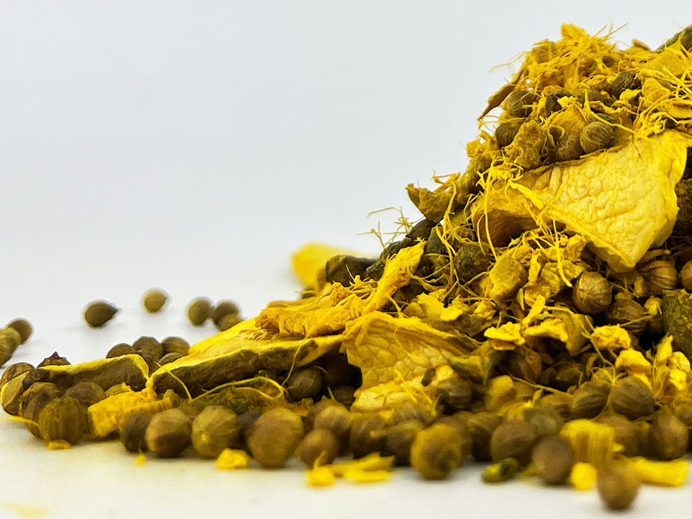 Opis Grzyb shiitake, znany z intensywnego smaku umami, nadaje herbacie głęboki, korzenny aromat, dzięki któremu każdy łyk staje się wyjątkowym doznaniem. Napój bezkofeinowy z nasionami kolendry i imbirem, grzybami shiitake (10%), płatkami pieprzu, nasionami kardamonu, korzeniem lukrecji, korzeniem kurkumy, naturalnym aromatem i aromatem lawendy. Deklarowana wartość odżywcza na 100 ml: Energia 4 kJ / 1 kcal. Tłuszcz <0,1 g, w tym nasycone <0,1 g. Węglowodany 0,1 g, w tym cukry 0,1 g. Białko <0,1 g. Sól <0,01 g.