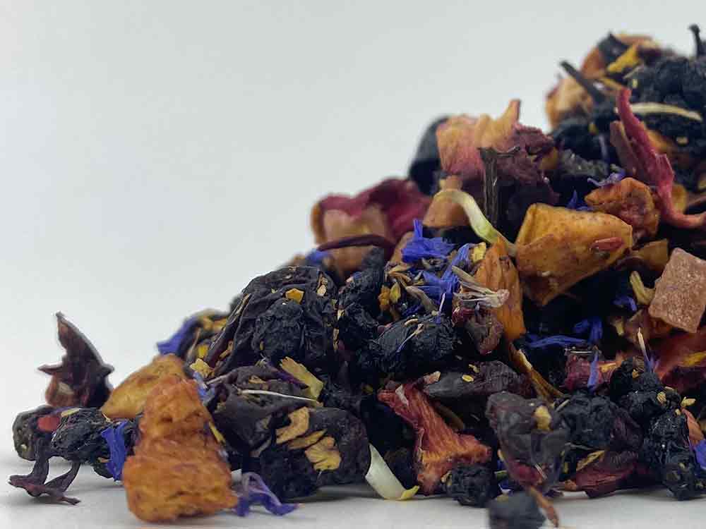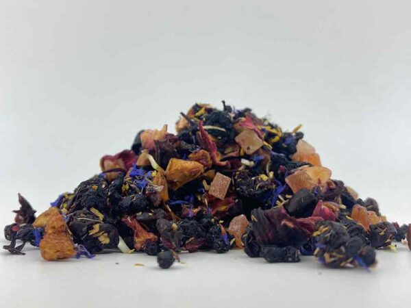 Opis: Jabłko, hibiskus, rodzynki (rodzynki, olej słonecznikowy), czarny bez, papaja (papaja, cukier), agrest, perfumy, słonecznik, chabry, maliny czerwone, truskawki. Wartość odżywcza na 100 ml: